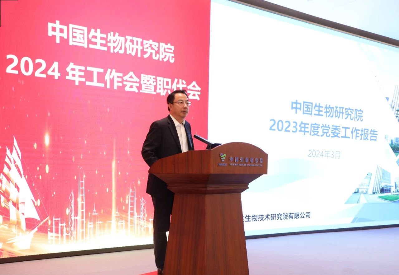 3月6日,中国生物研究院召开2024年工作会暨职代会。会议以习近平新时代中国特色社会主义思想为指导,以习近平总书记重要讲话和重要指示批示精神为根本遵循,全面贯彻党的二十大、二十届二中全会和中央经济工作会议精神,传达国药集团和中国生物工作会暨职代会精神,总结研究院2023年发展情况,分析面临形势,部署2024年重点工作任务。