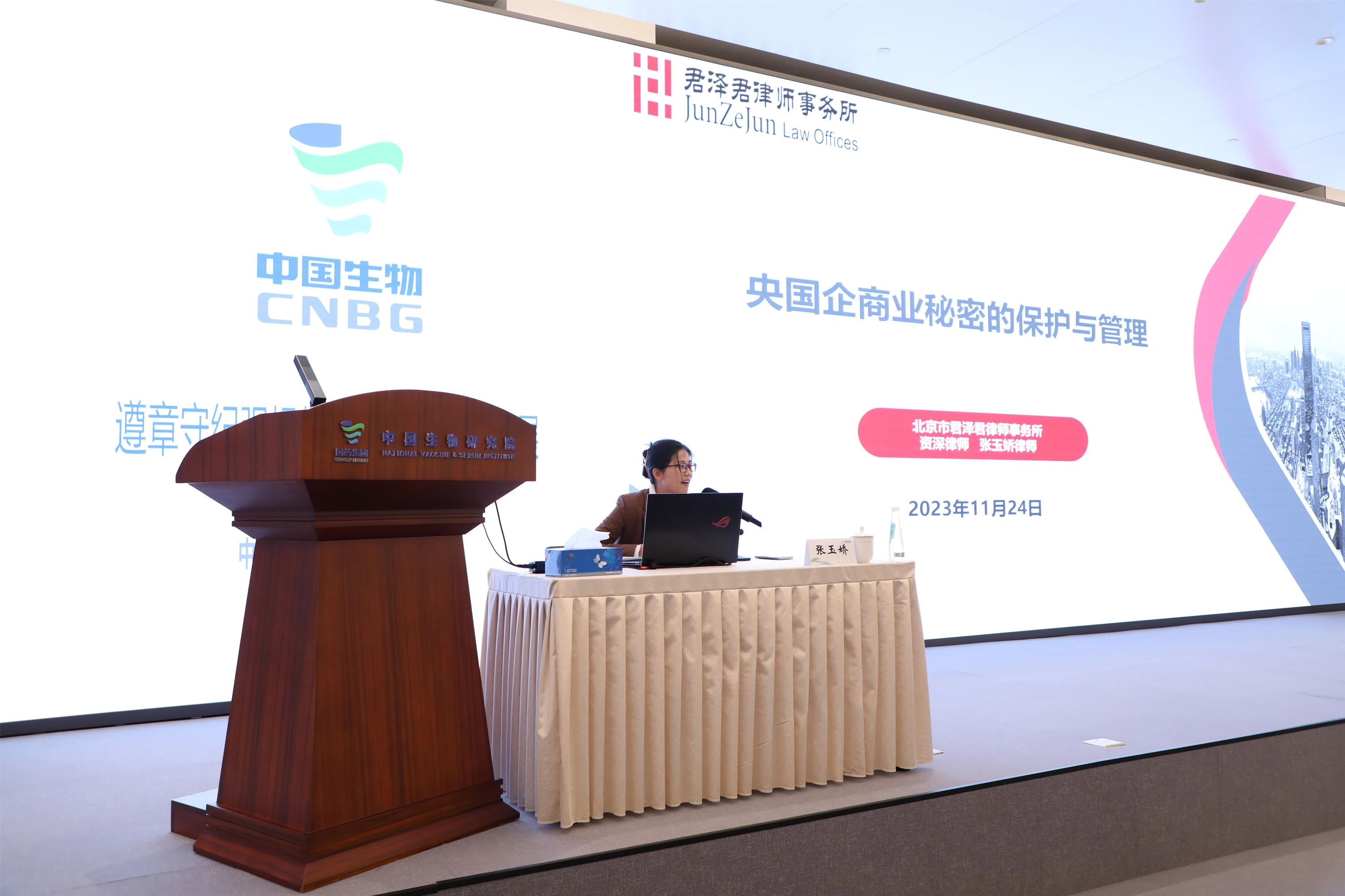 为强化商业秘密保护,指引研究院商业秘密合规管理。11月24日,中国生物研究院邀请北京市君泽君律师事务所资深律师张玉娇来访交流,并做“央国企商业秘密的保护与管理”主题分享,为员工详细介绍了商业秘密的概念、央国企商业秘密保护的要求,如何进行商业秘密的管理与保护等内容。