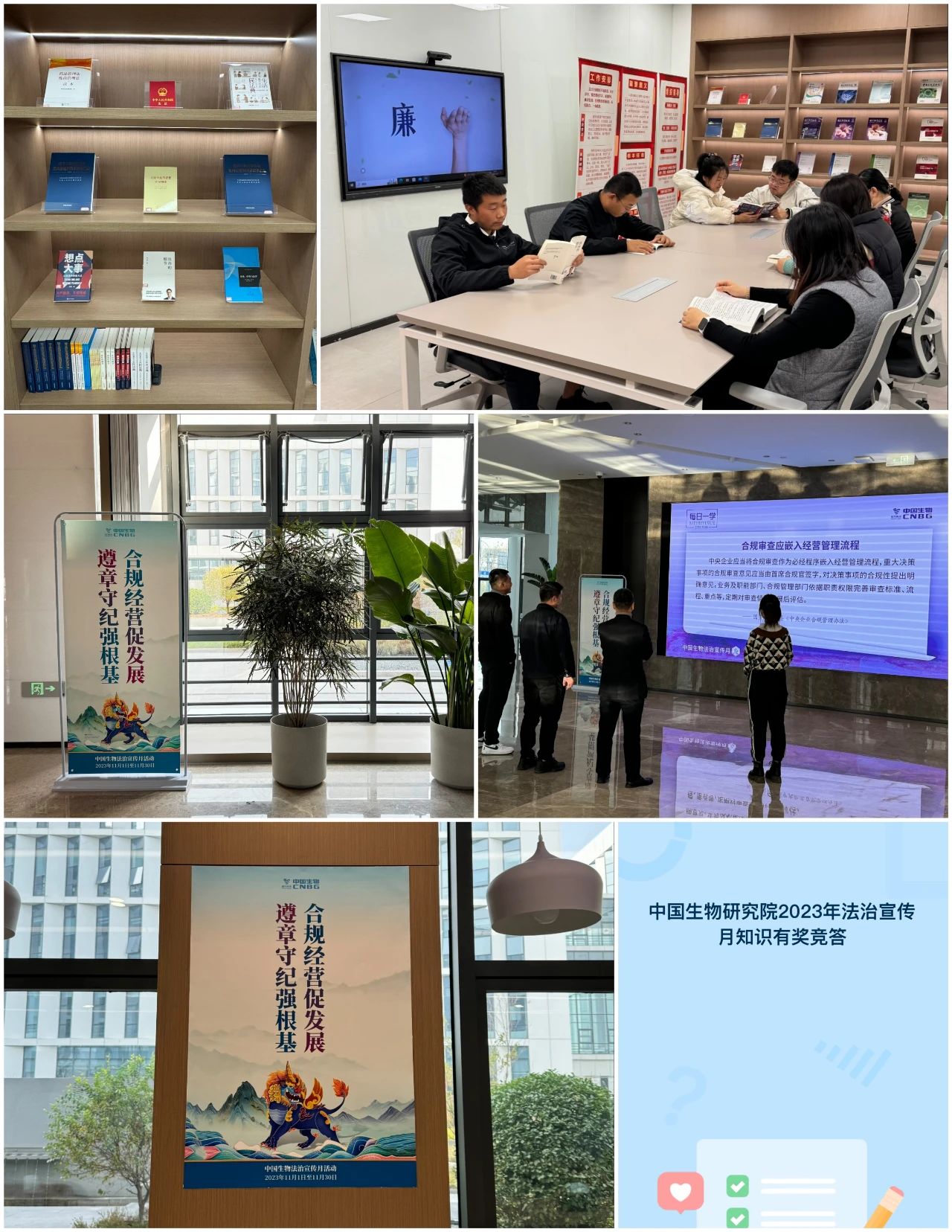 为深入贯彻习近平法治思想,落实全面依法治国战略部署,推动国务院国资委、国药集团、中国生物关于八五普法规划部署要求的全面实施,2023年11月1日至30日,中国生物研究院开展了以“遵章守纪强根基 合规经营促发展”为主题的法治宣传月活动,推动企业深化法治建设,加强合规管理,切实防控风险,有力保障深化改革与高质量发展。