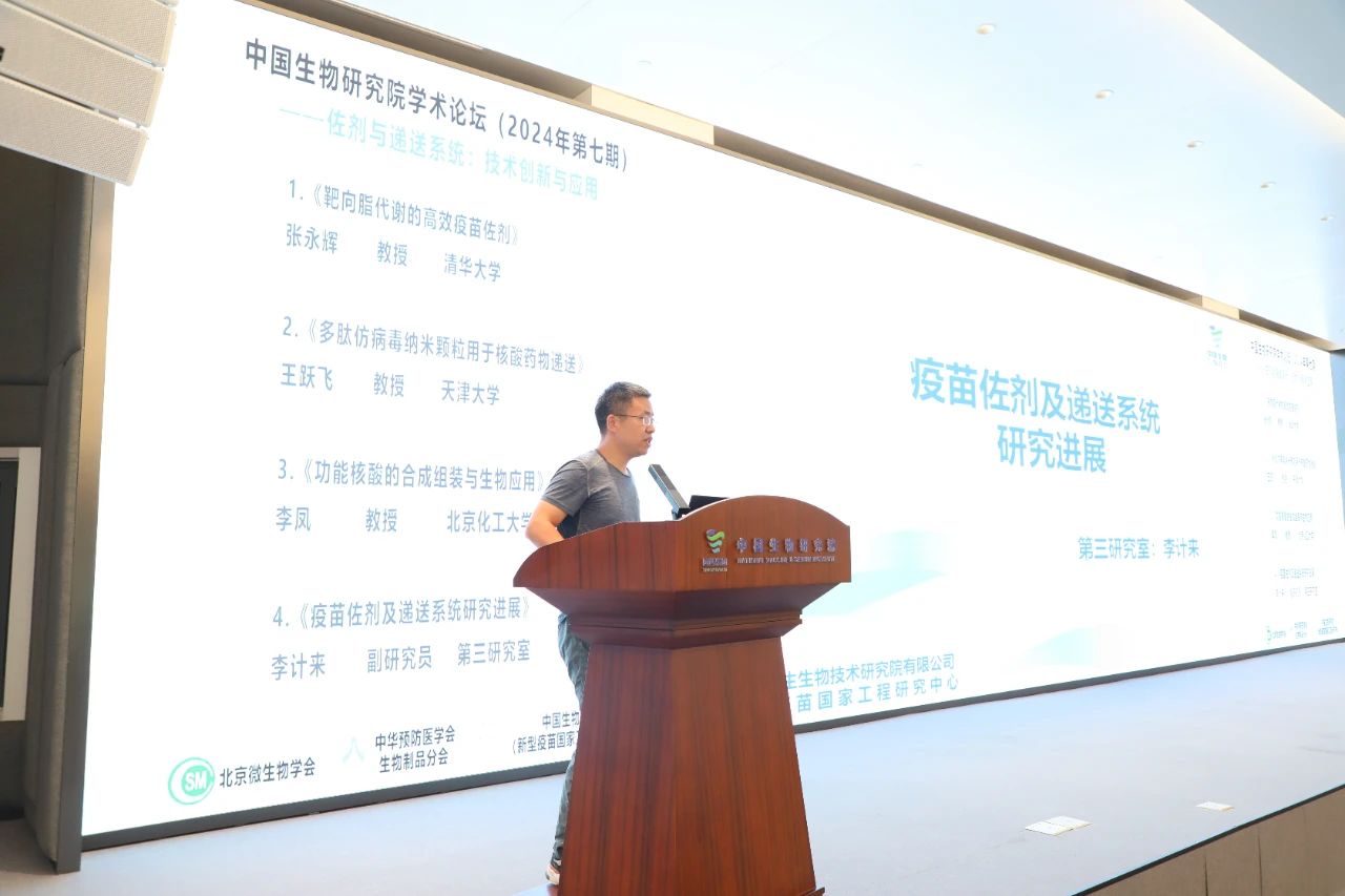 最后,研究院第三研究室的李计来副研究员以“疫苗佐剂及递送系统研究进展”为题,系统地介绍了第三研究室近年来在佐剂和递送系统方面的相关研究。报告回顾并总结了现有佐剂的研究现状,详细介绍了第三研究室多种类型的佐剂和递送系统的设计及研发过程。